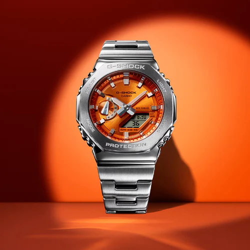 For the adventurous man who loves bold design, the Casio GM-2110 Asymmetrical Orange Men’s Watch offers a dynamic look. The asymmetrical shape and bright orange hue make this watch stand out, while the shock-resistant features ensure it can keep up with your active lifestyle.