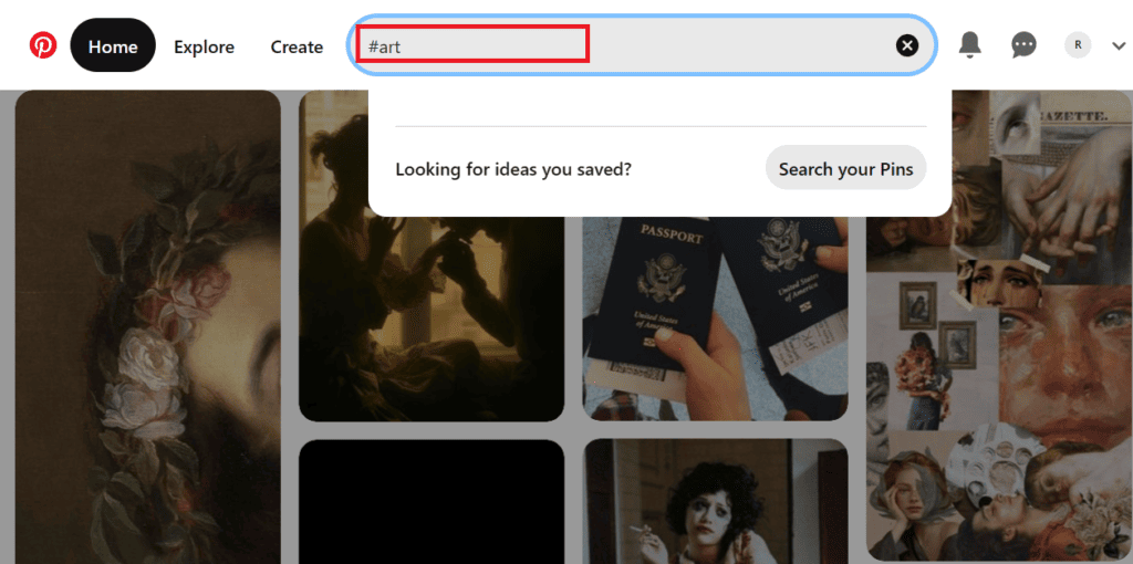 Open Pinterest in any browser and click on the search bar.