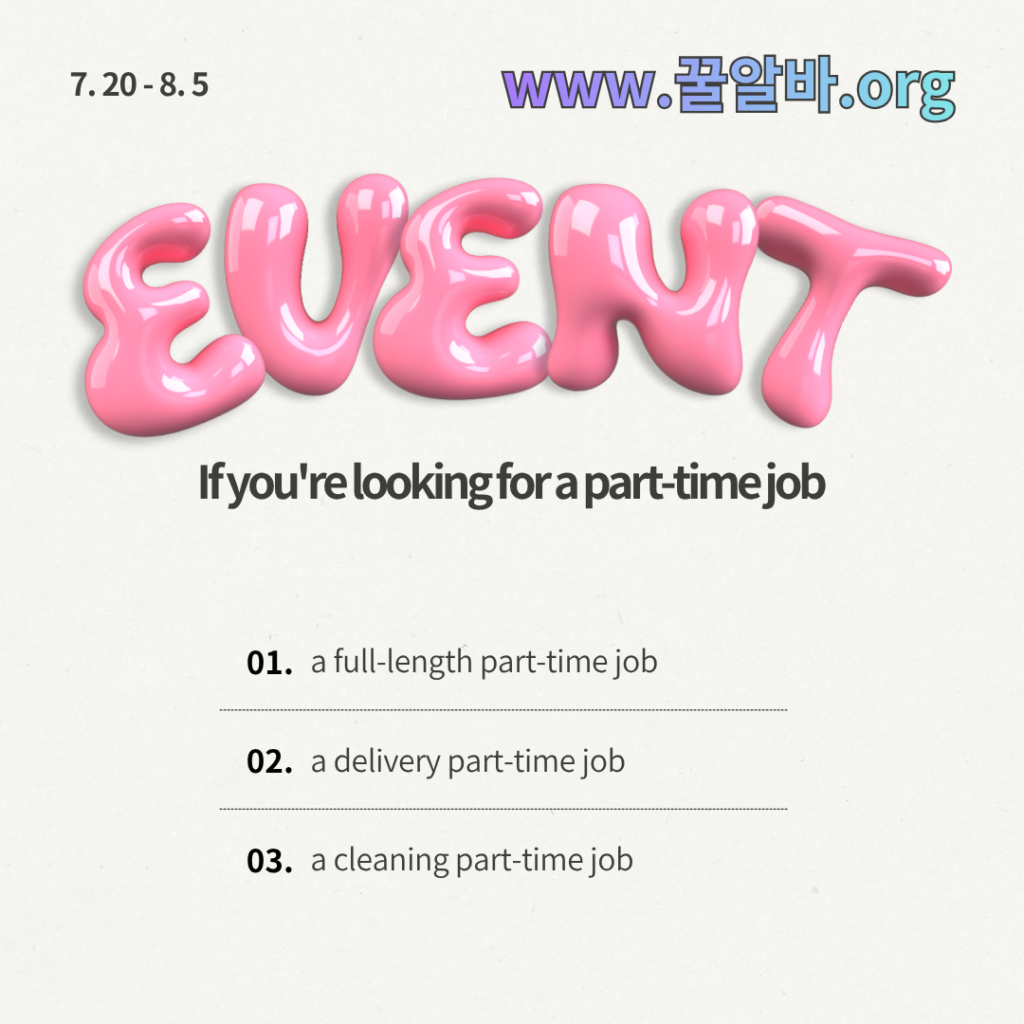 A good part-time job in Korea can be selected in a variety of ways depending on the individual’s disposition, time, and target income. Below, let’s summarize 10 part-time jobs that are relatively realistic and have steady demand, and have a good income according to the conditions.