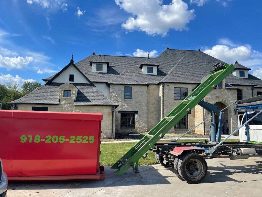 We treat your property with respect, but we are dealing with thousands of pounds of steel. One pro-tip we always share with our customers is to lay down some protection. Placing plywood sheets underneath the wheels and the front rollers of the dumpster can prevent scratches or cracks on your driveway, especially on hot summer days in Oklahoma when asphalt can get soft.
